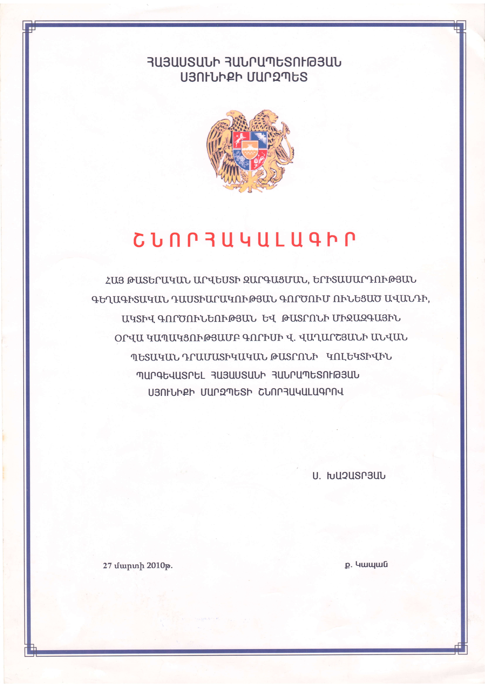 ՇՆՈՐՀԱԿԱԼԱԳՐԵՐ